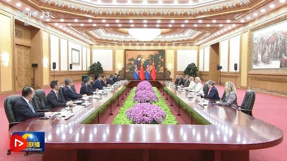 10月14日上午,國(guó)家主席習(xí)近平在北京人民大會(huì)堂會(huì)見來華出席全球婦女峰會(huì)的冰島總統(tǒng)托馬斯多蒂爾。