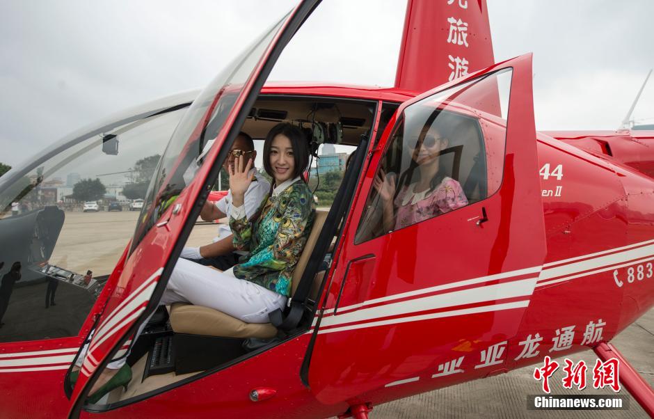 3月26日,隨著三亞亞龍通用航空公司的兩架紅色直升機(jī)在海南?谳d客啟航。標(biāo)志著低空觀光游覽項(xiàng)目正式進(jìn)駐?,游客最低花費(fèi)500元人民幣即可體驗(yàn)低空飛行。據(jù)了解,這種由美國(guó)羅賓遜直升機(jī)公司生產(chǎn)的R44雷鳥(niǎo)II型直升機(jī),可乘坐4人(含飛行員),加滿油可以飛行兩個(gè)半小時(shí),航程約600公里。目前該公司在?谝呀(jīng)開(kāi)辟了?谑袇^(qū)、世紀(jì)大橋、火山口、假日海灘、萬(wàn)綠園等景點(diǎn)觀光飛行。圖為游客體驗(yàn)直升機(jī)低空旅游。中新社發(fā) 駱云飛 攝dc7安康新聞網(wǎng)