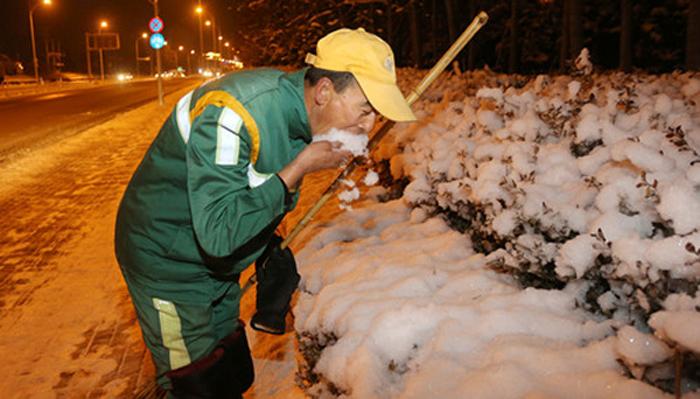 環(huán)衛(wèi)夫妻掃雪17小時靠吃雪解渴