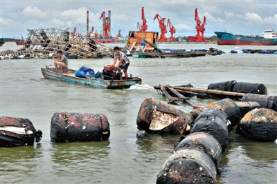 7月19日,受臺風(fēng)“威馬遜”影響,一條虎頭鯨受傷擱淺在廣東陽江市海陵島附近海域,武警邊防官兵嘗試著將鯨魚送到深水區(qū)。昨日,廣西欽州漁民在搶修被臺風(fēng)破壞的……