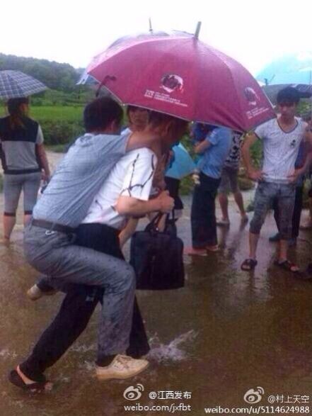 微博圖片國際在線消息:22日晚,貴溪市通過江西省人民政府新聞辦官方微博“江西發(fā)布”表示,被免職“怕濕鞋讓人背”干部系同事主動(dòng)提出背他過去。微……