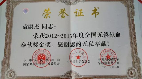 全國(guó)無(wú)償獻(xiàn)血奉獻(xiàn)獎(jiǎng)金獎(jiǎng)、市國(guó)稅局副局長(zhǎng):袁康杰(左)