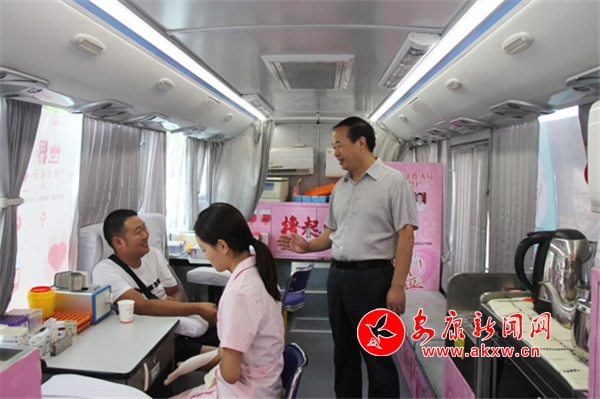 安康新聞網(wǎng)訊(通訊員 屈閔)“今天是7月25日,安康,晴,最高氣溫41℃,請大家盡量減少外出,做好防暑降溫措施,小心中暑!”主播甜美的嗓音從廣播里傳來,提醒廣大市民又是一個高溫天,要注意防暑。但對于安康市中心血站的一線工作人員來說,這只是個普普通通的工作日,因?yàn)闊o論是酷暑還是嚴(yán)寒,我們的獻(xiàn)血車總會準(zhǔn)時出現(xiàn)在大家的視線里,從不缺席。這不,早上7點(diǎn)半,獻(xiàn)血車已經(jīng)?吭诹宋挥谀檄h(huán)路的喜盈門超市門,等待愛心人士的到來。nVH安康新聞網(wǎng)