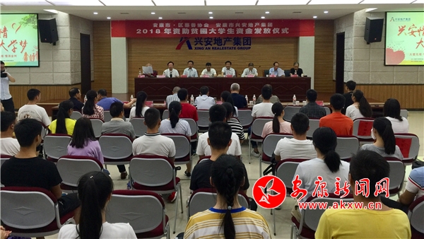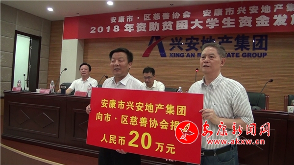 安康新聞網(wǎng)訊(記者 張喬) 8月22日上午,由市慈善協(xié)會、區(qū)慈善協(xié)會、興安地產(chǎn)集團(tuán)共同舉辦的“2018年資助貧困大學(xué)生資金發(fā)放儀式”在興安地產(chǎn)集團(tuán)舉行。