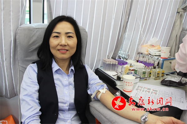 安康農(nóng)商銀行黨群工作部總經(jīng)理李家蘭,作為此次活動的組織者,前期積極協(xié)調(diào)各方,活動期間,李經(jīng)理一直在采血車上為大家服務。直到中午休息時間,她才坐了下來捐血了200ml血液,這也是她第三次獻血。李經(jīng)理說:“組織這個活動是想告訴身邊的人,無償獻血無損健康,只是需要一點勇氣,如果大家都參與進來,帶動更多的人,就能在全社會營造出人人支持無償獻血的氛圍,我們今后也將積極組織參與更多獻血活動。”