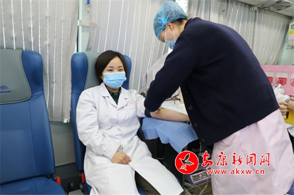 獻(xiàn)血車上,不僅有像楊明安這樣的“?”,還有很多第一次參加無償獻(xiàn)血的青年醫(yī)務(wù)人員。BqU安康新聞網(wǎng)