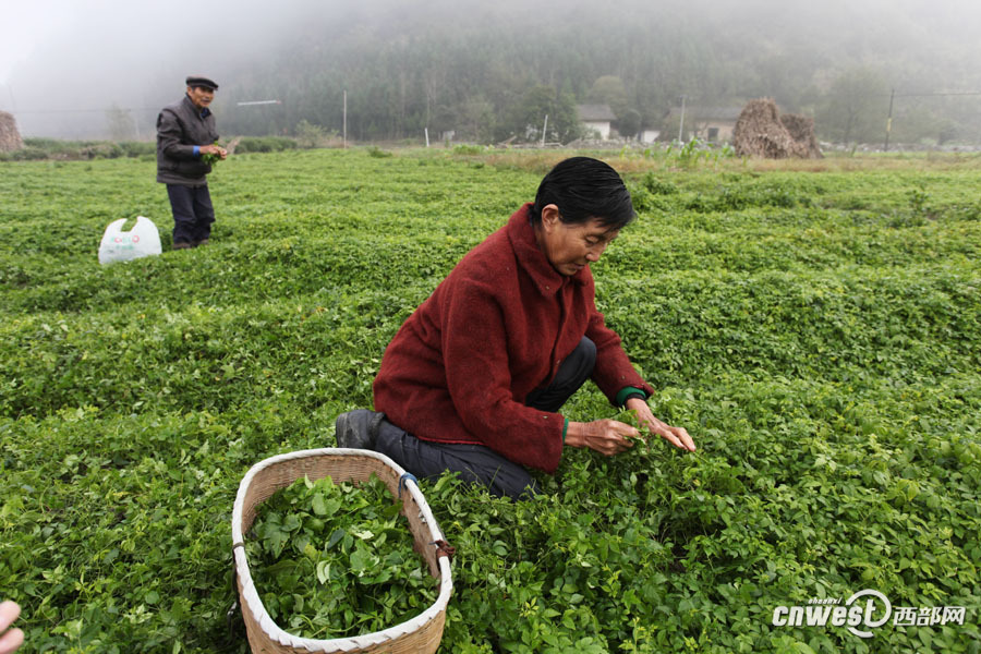 廣佛鎮(zhèn)鐵爐村農戶在采摘絞股蘭。