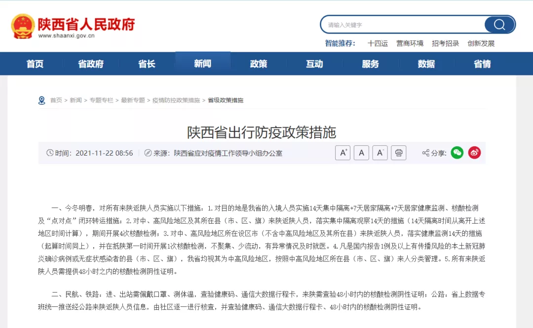 近日,陜西省應(yīng)對疫情工作領(lǐng)導(dǎo)小組辦公室發(fā)布陜西省最新出行防疫政策措施。