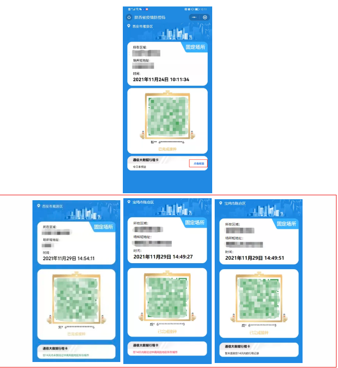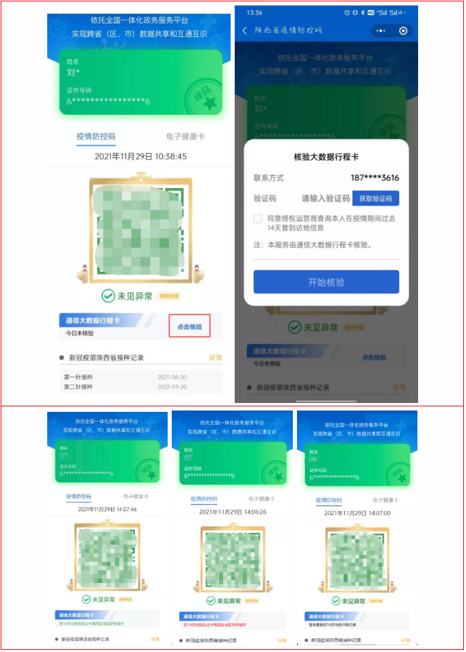 升級(jí)后的陜西省疫情防控碼與通信大數(shù)據(jù)行程卡(即行程卡)實(shí)現(xiàn)“卡碼融合”,無需跳轉(zhuǎn),同一界面即可實(shí)現(xiàn)疫情防控碼、行程卡、疫苗接種等信息的顯示。