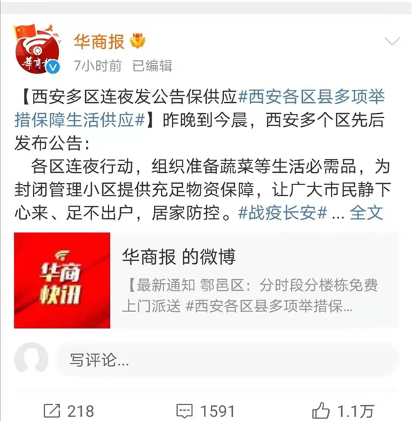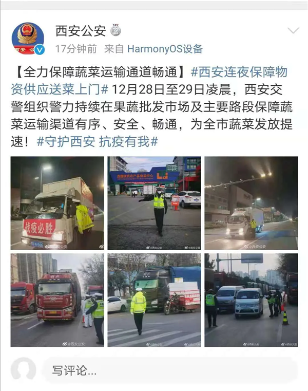 12月28日晚,西安全市總動(dòng)員組織準(zhǔn)備蔬菜等生活必需品,為封閉管理小區(qū)提供充足物資保障,鄠邑區(qū)、碑林區(qū)、雁塔區(qū)、高新區(qū)等陸續(xù)發(fā)布物資保障公告,讓廣大市民靜下心來、足不出戶,居家防控。