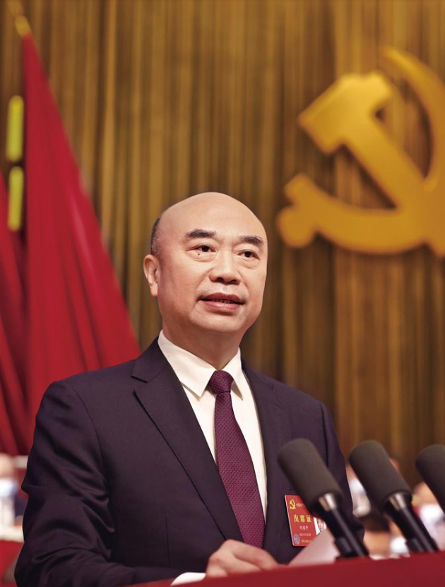 在熱烈的掌聲中,劉國(guó)中代表中共陜西省第十三屆委員會(huì)向大會(huì)作了題為《牢記囑托 感恩奮進(jìn) 解放思想改革創(chuàng)新再接再厲 譜寫陜西高質(zhì)量發(fā)展新篇章》的報(bào)告。報(bào)告共分十一個(gè)部分:一、過去五年的工作;二、今后五年的奮斗目標(biāo)和總體要求;三、以供給側(cè)結(jié)構(gòu)性改革為主線,建設(shè)現(xiàn)代化經(jīng)濟(jì)體系;四、打造內(nèi)陸改革開放高地,激發(fā)高質(zhì)量發(fā)展動(dòng)力活力;五、全面推進(jìn)鄉(xiāng)村振興,加快農(nóng)業(yè)農(nóng)村現(xiàn)代化;六、踐行綠水青山就是金山銀山理念,推動(dòng)生態(tài)環(huán)境質(zhì)量持續(xù)好轉(zhuǎn);七、建設(shè)社會(huì)主義民主政治,凝聚團(tuán)結(jié)奮斗的強(qiáng)大力量;八、堅(jiān)定文化自信,加強(qiáng)文化建設(shè);九、加強(qiáng)民生保障和社會(huì)建設(shè),持續(xù)提升人民生活水平;十、統(tǒng)籌發(fā)展和安全,防范化解重大風(fēng)險(xiǎn);十一、深化自我革命,推動(dòng)全面從嚴(yán)治黨向縱深發(fā)展。