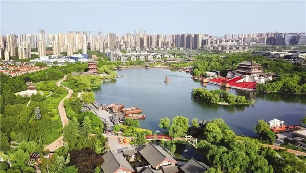 西安大唐芙蓉園(4月25日攝,無人機(jī)照片)。新華社記者 劉瀟攝