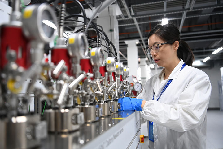 工作人員在榆林中科潔凈能源創(chuàng)新研究院工藝放大平臺實驗室制備催化劑小試樣品(2024年3月6日攝)。新華社記者 鄒競一 攝A3A安康新聞網(wǎng)