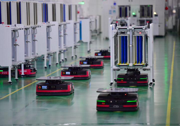 智能搬運(yùn)機(jī)器人在隆基單晶硅太陽能電池工廠內(nèi)工作(2024年3月6日攝)。新華社記者 邵瑞 攝A3A安康新聞網(wǎng)