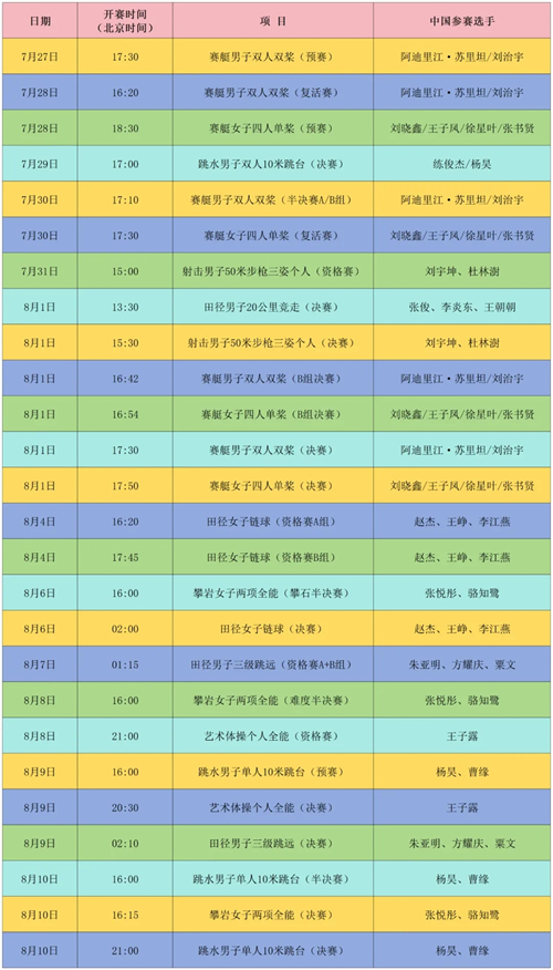 陜西十名運(yùn)動(dòng)員巴黎奧運(yùn)會(huì)賽程公布