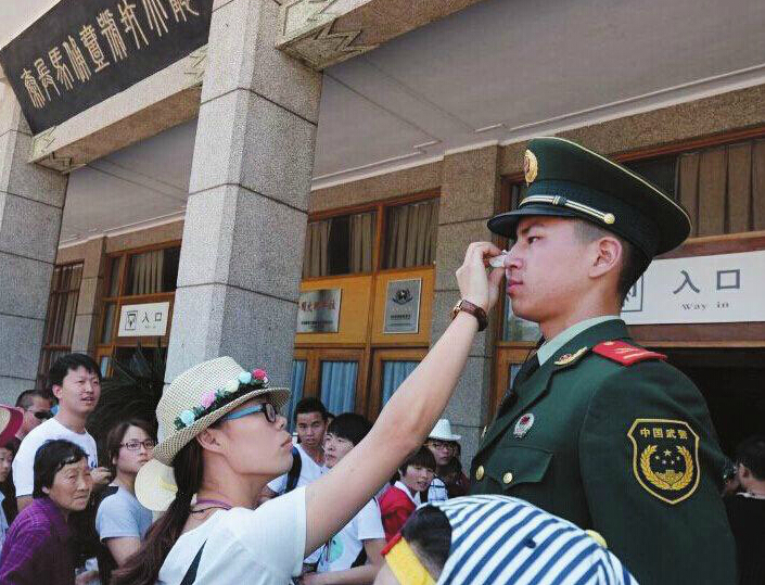 女游客為站崗武警擦汗引網(wǎng)友點(diǎn)贊