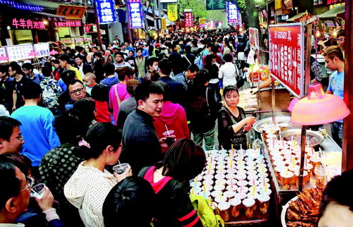清明小長(zhǎng)假,名揚(yáng)海內(nèi)外的西安市北院門(mén)小吃一條街上,灌湯包子、柿子餅、羊肉泡饃、水盆羊肉、鏡糕、烤全羊等上百個(gè)品種的特色小吃吸引了世界各地?cái)?shù)以萬(wàn)計(jì)的游客……