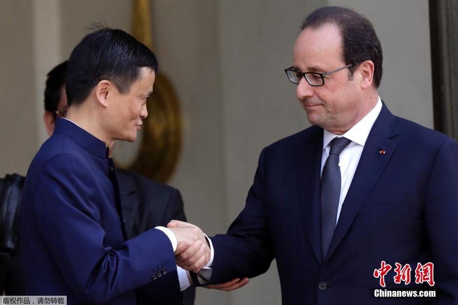 當(dāng)?shù)貢r(shí)間2015年3月18日,法國(guó)巴黎,阿里巴巴集團(tuán)CEO馬云抵達(dá)愛麗舍宮,與法國(guó)總統(tǒng)奧朗德舉行會(huì)談。uzf安康新聞網(wǎng)