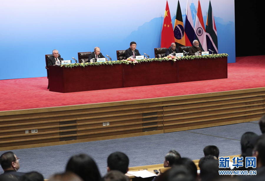 9月4日,國家主席習(xí)近平在廈門出席金磚國家領(lǐng)導(dǎo)人同工商理事會對話會并發(fā)表講話,巴西總統(tǒng)特梅爾、俄羅斯總統(tǒng)普京、印度總理莫迪、南非總統(tǒng)祖馬共同出席。新華社記者 丁林 攝2ga安康新聞網(wǎng)