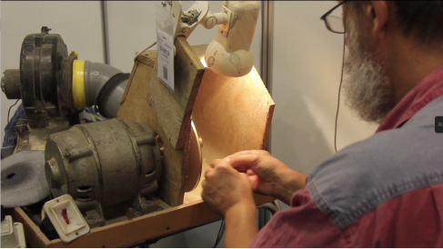 一位波蘭技師正用機(jī)器磨具磨制一塊琥珀原石。人民網(wǎng)記者 暨佩娟攝4mE安康新聞網(wǎng)