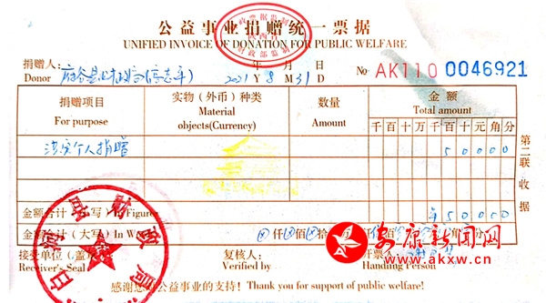 本網(wǎng)訊(通訊員 李玉興)近日,持續(xù)的強降雨導(dǎo)致白河縣境內(nèi)滑坡、泥石流等自然災(zāi)害頻發(fā),道路中斷,導(dǎo)致數(shù)以千計的群眾被迫轉(zhuǎn)移。災(zāi)情不僅牽動著每一名白河人的心,也讓一位遠在陜北的“老朋友”記掛萬分。8月31日一早,白河縣民政局救災(zāi)捐贈專戶上收到一筆來自陜西府谷縣的特殊捐款,這也是發(fā)生暴雨災(zāi)情后收到的第一筆個人捐款。
