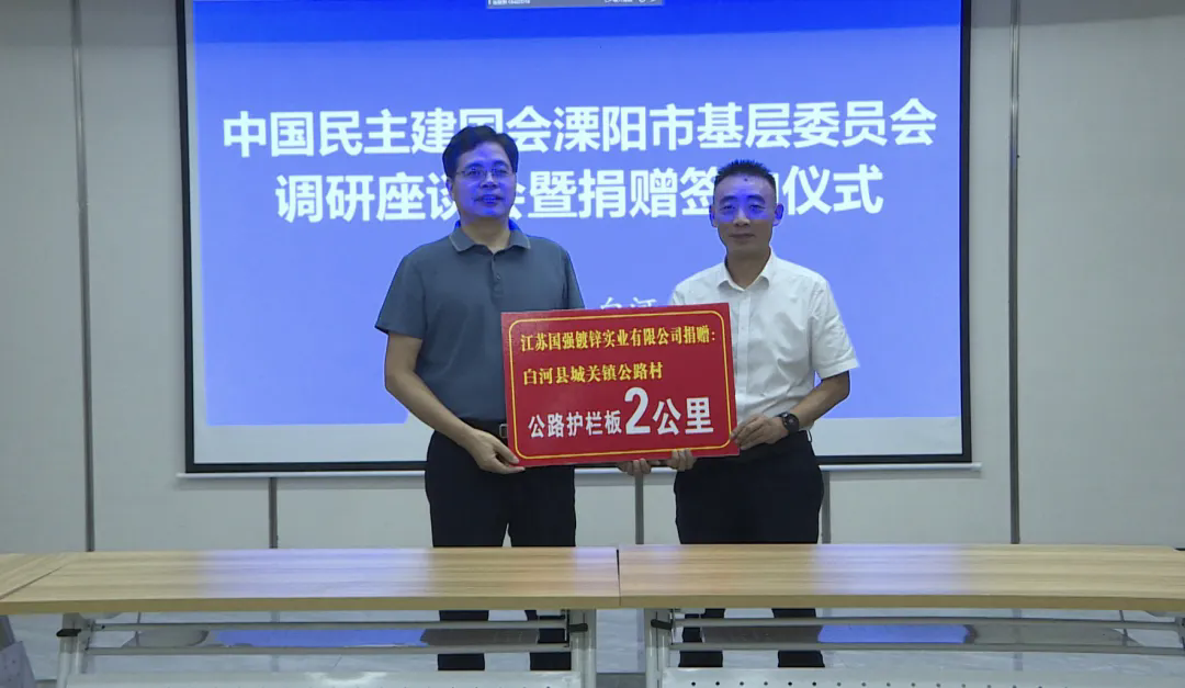在座談會(huì)上,民建溧陽基層委員會(huì)向白河慈善協(xié)會(huì)捐贈(zèng)5萬元幫扶資金,會(huì)員企業(yè)江蘇國強(qiáng)鍍鋅實(shí)業(yè)有限公司為城關(guān)鎮(zhèn)公路村捐贈(zèng)了全長2公里的公路護(hù)欄板,會(huì)員企業(yè)溧陽暢享互聯(lián)網(wǎng)科技有限公司與白河縣電子商務(wù)公共服務(wù)中心簽訂了戰(zhàn)略合作協(xié)議。