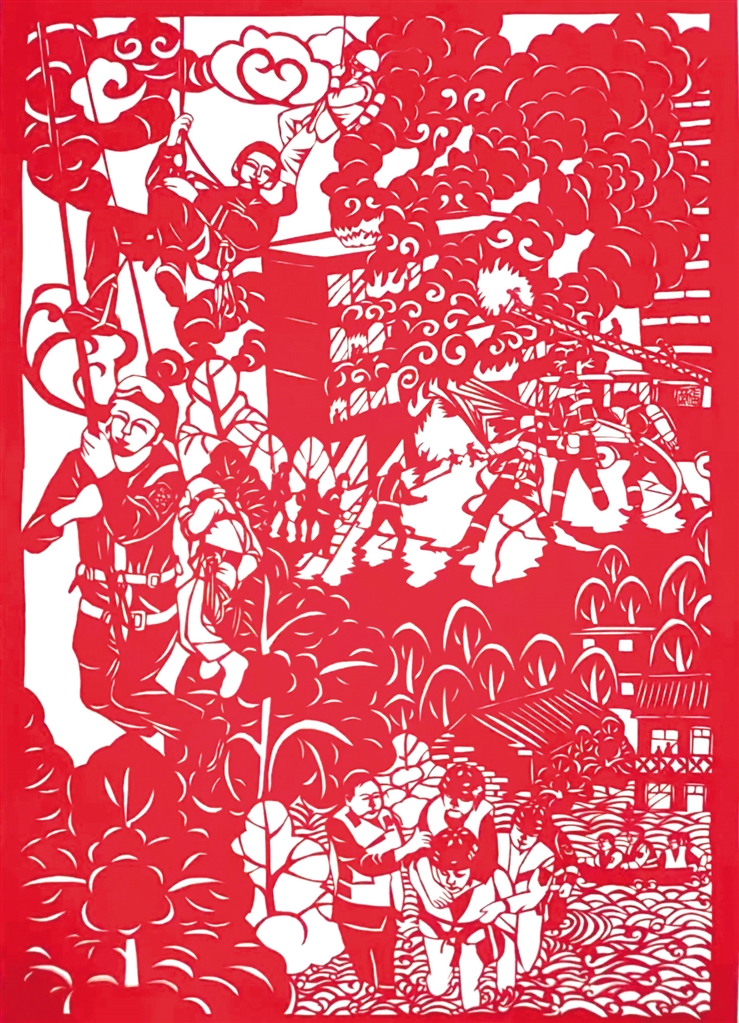 2022年,張莉的剪紙作品在“我與火焰藍(lán)”安康消防授旗訓(xùn)詞三周年風(fēng)采繪畫大賽中,榮獲“成人組優(yōu)秀作品獎”,并被主辦方收藏。2023年張莉帶隊參加“德潤安康”安康市首屆校園科技藝術(shù)節(jié),在剪紙區(qū),小隊員們發(fā)揮巧思妙想,精心設(shè)計、細(xì)心折剪,只見刀尖一開一合,紅紙不斷翻轉(zhuǎn),一幅幅栩栩如生、惟妙惟肖的作品就讓觀眾親眼見證了“刀光剪影”的神奇。隊員們嫻熟的技藝,精美的作品迅速吸引了許多人駐足參觀。Hkt安康新聞網(wǎng)