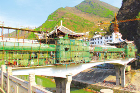 12月12日,工人們正在加緊建設(shè)景觀廊橋。據(jù)了解,白河縣白石河景觀廊橋工程于去年11月開(kāi)工建設(shè),總投資500萬(wàn)元,橋長(zhǎng)90米,寬7.5米。 吳 磊 攝……