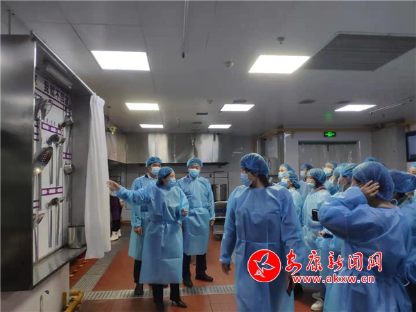 會(huì)后,與會(huì)人員現(xiàn)場(chǎng)觀摩學(xué)習(xí)了安中高新分校食堂“4D”管理模式。