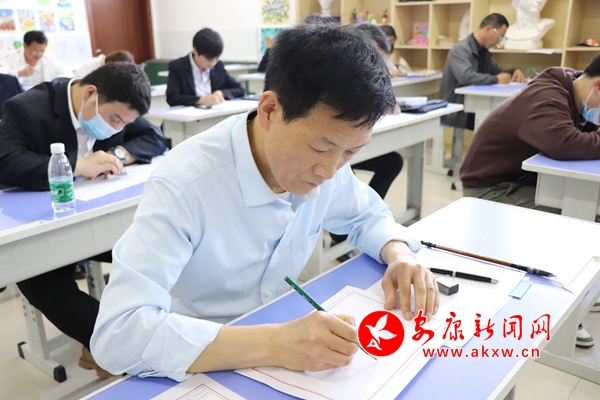 活動(dòng)中,參賽選手在規(guī)定時(shí)間內(nèi),完成鋼筆字、粉筆字、毛筆字和簡(jiǎn)筆畫創(chuàng)作。黨員教師鋼筆字和粉筆字書寫入黨誓詞,進(jìn)一步錘煉了黨性,重溫了初心,堅(jiān)定了不忘初心跟黨走的信心。非黨員教師硬筆書寫《清平樂(lè)·六盤山》,在感受偉人宏大氣概和紅軍北上抗日?qǐng)?jiān)強(qiáng)意志的同時(shí),激發(fā)了大家為黨育人、為國(guó)育才的不竭動(dòng)力。整個(gè)比賽過(guò)程,選手們潑墨揮毫、激烈角逐,憑借著過(guò)硬的專業(yè)技能和深厚的文化素養(yǎng),在短短40分鐘內(nèi),將一幅幅規(guī)范、簡(jiǎn)潔的書畫作品呈現(xiàn)在大家眼前。毛筆字或氣勢(shì)磅礴或剛?cè)岵?jì);鋼筆字或筆順流暢或秀氣雋美;粉筆字或清新端正或大方得體;簡(jiǎn)筆畫或勾勒簡(jiǎn)潔或陽(yáng)光活力,充分展現(xiàn)了安康高新區(qū)教師扎實(shí)的教學(xué)基本功。