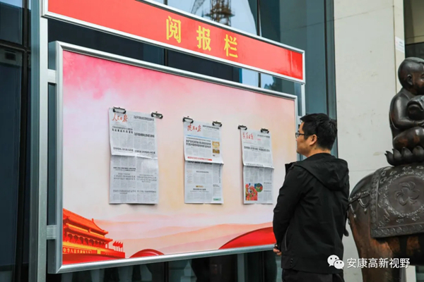 日前,在安康高新區(qū)的市民廣場(chǎng)、政務(wù)中心、公園綠地、大眾餐廳、居民社區(qū)等人口密集區(qū)域,承擔(dān)著“黨報(bào)指引方向,閱讀增添力量”宣傳教育功能的一個(gè)個(gè)“閱報(bào)欄”,讓廣大市民在享受物質(zhì)生活的同時(shí)更具精神追求,成為創(chuàng)建全國(guó)文明城市中一道道亮麗的風(fēng)景。VgH安康新聞網(wǎng)