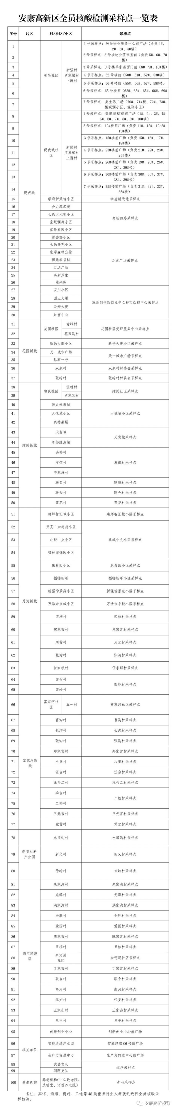 附件:安康高新區(qū)全員核酸檢測采樣點一覽表xTW安康新聞網(wǎng)