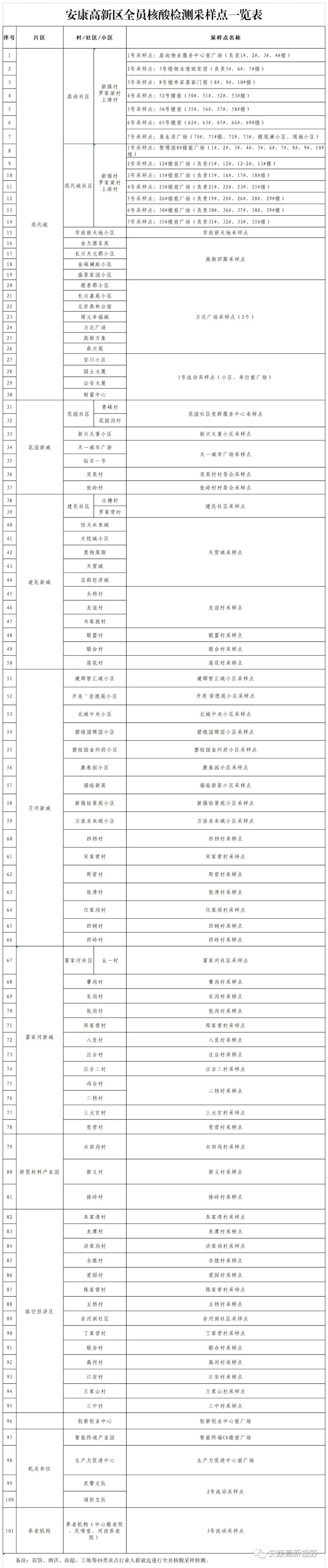 附件:安康高新區(qū)全員核酸檢測采樣點(diǎn)一覽表