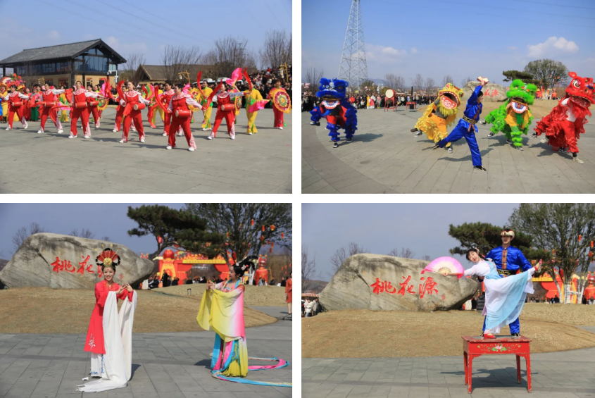 豐收大秧歌、龍騰腰鼓隊、喜慶蓮響、彩船、花轎大聯(lián)歡、社火、小場子戲等精彩的傳統(tǒng)民俗節(jié)目在桃花源相繼上演。新穎的編排、精彩的表演,令現(xiàn)場游客大飽眼福,叫好聲、喝彩聲此起彼伏。當(dāng)天近25000余名市民游客前往桃花源觀看表演、打卡游園,處處洋溢著“歡歡喜喜過大年”的節(jié)日氣氛。