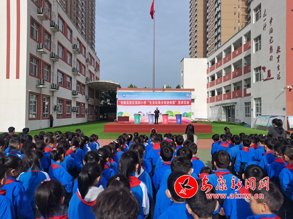 本網(wǎng)訊(通訊員 王宗濤)“同學(xué)們,我們是環(huán)境保護(hù)小天使,我們要讓山更青,水更綠,天更藍(lán),我們生活的家園更美麗!我們應(yīng)該養(yǎng)成垃圾分類的好習(xí)慣。”4月9日上午,春陽燦爛的安康高新區(qū)第四小學(xué)的操場(chǎng)上,生活垃圾分類“進(jìn)校園”宣講活動(dòng)火熱進(jìn)行中。