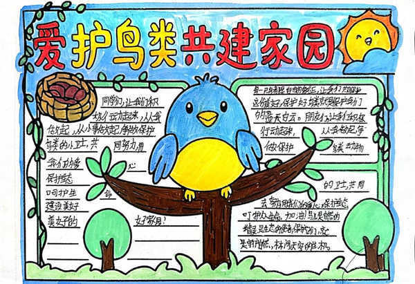守護藍天精靈,共享美好家園!《安康高新區(qū)愛鳥護鳥倡議書》發(fā)布以來,全區(qū)的孩子們積極行動,他們用畫筆以純真之心勾勒出對鳥兒的關愛與守護。他們把對鳥兒的喜愛融進顏料,將守護的心愿畫入畫紙。稚嫩的筆觸下,有給小鳥搭建的溫暖巢穴,有禁止捕鳥的醒目標語,有鳥兒在藍天自由翱翔的愜意,有人類與鳥兒和諧共處的溫馨,有孩子們與鳥兒牽手同行的幻想…… (通訊員 劉松)SrP安康新聞網(wǎng)