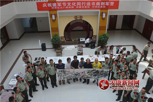 據(jù)了解,本次慶祝八•一建軍節(jié),漢濱區(qū)文廣旅游局、市、區(qū)美術(shù)家協(xié)會(huì)送書(shū)畫(huà)到軍營(yíng)活動(dòng)走進(jìn)武警安康支隊(duì),旨在在建軍90周年到來(lái)之際,以送書(shū)畫(huà)的方式,慰問(wèn)廣大一線武警官兵。進(jìn)一步增進(jìn)軍民魚(yú)水情誼,豐富軍營(yíng)文化生活。