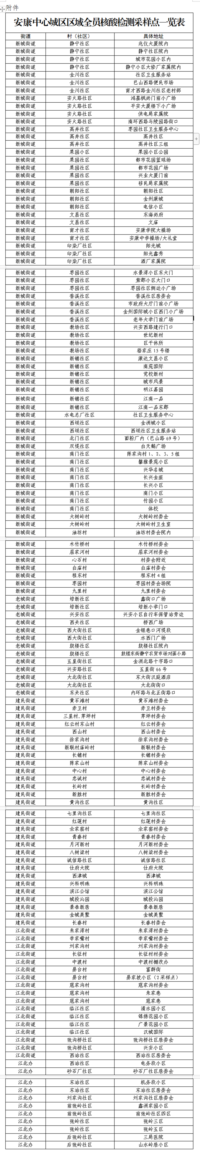 附件:安康中心城區(qū)區(qū)域全員核酸檢測采樣點(diǎn)一覽表