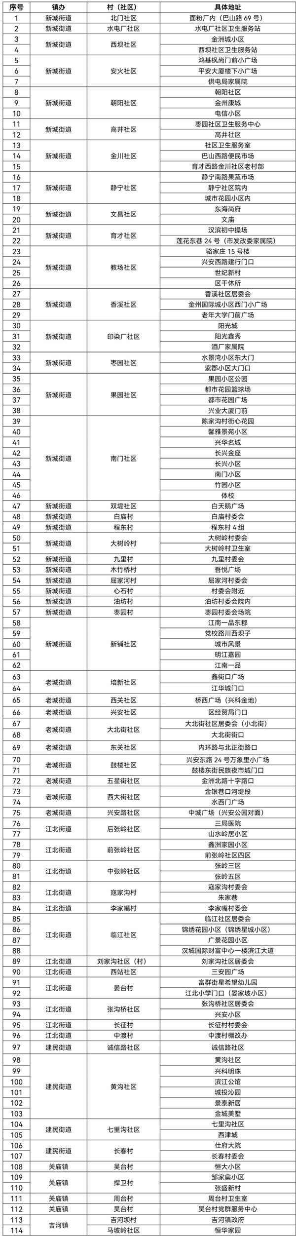 共設(shè)置114個采樣點(見附件),由各街道、鎮(zhèn)政府統(tǒng)一安排采樣點設(shè)置、人員組織、秩序維護(hù)。檢測對象按照街道和鎮(zhèn)政府要求,分時段有序到指定地點進(jìn)行采樣,避免人員聚集。