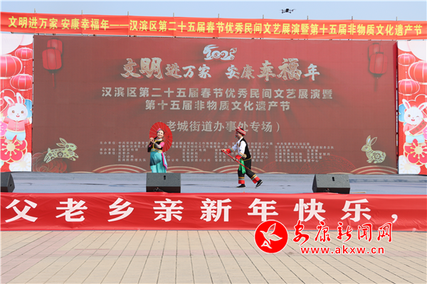 本網(wǎng)訊(通訊員 馬斌倩)2月3日,正月十三,漢濱區(qū)第二十五屆春節(jié)優(yōu)秀民間文藝展演暨第十五屆非物質(zhì)文化遺產(chǎn)節(jié)老城街道專(zhuān)場(chǎng)在金州廣場(chǎng)熱鬧上演。