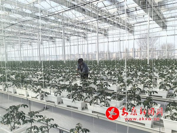 據(jù)介紹,綁蔓作業(yè)是為了給圣女果苗一個向上生長的支撐,圣女果苗高度會長到五至七米,每摘一至兩層果,就要落蔓。這樣的種植方式有效地增加了空間面積。