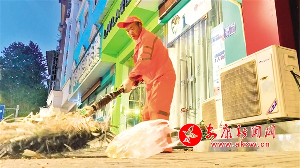 “要趕在早高峰之前完成第一次大掃,等天亮好了路上車多就掃不成了。大掃完還要在仔細打掃兩遍,差不多就到學生娃們上學的時間了,得去學校附近撿紙屑。”說完花子強加快了打掃的動作。