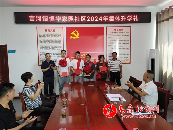 8月16日,漢濱區(qū)吉河鎮(zhèn)恒華家園社區(qū)舉行“弘揚新民風 拒絕升學宴”大學新生集體升學禮活動,為4名本科大學新生發(fā)放了助學金和紀念品,并簽訂了“弘揚新民風 拒絕升學宴”承諾書,用集體升學禮代替“升學宴”,爭做拒絕“升學宴”的踐行者和推動者,營造健康文明、勤儉節(jié)約的良好社會新風尚。(圖文/劉化梅) jzp安康新聞網(wǎng)