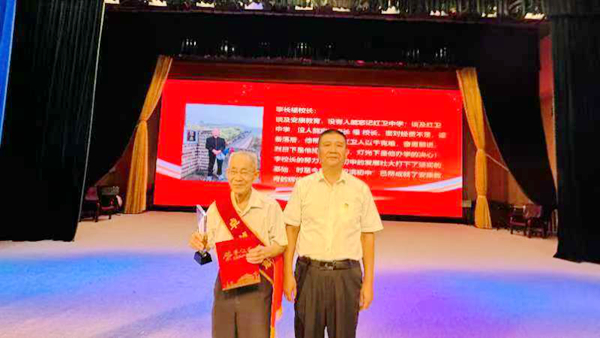 9月10日,漢濱初中舉行表彰大會,以學(xué)先進、樹典型的方式慶祝教師節(jié)。當(dāng)黨委書記徐平以深深的鞠躬禮,向年逾九旬的老校長李長福頒發(fā)漢濱初中突出貢獻獎時,全場響起熱烈的掌聲。
