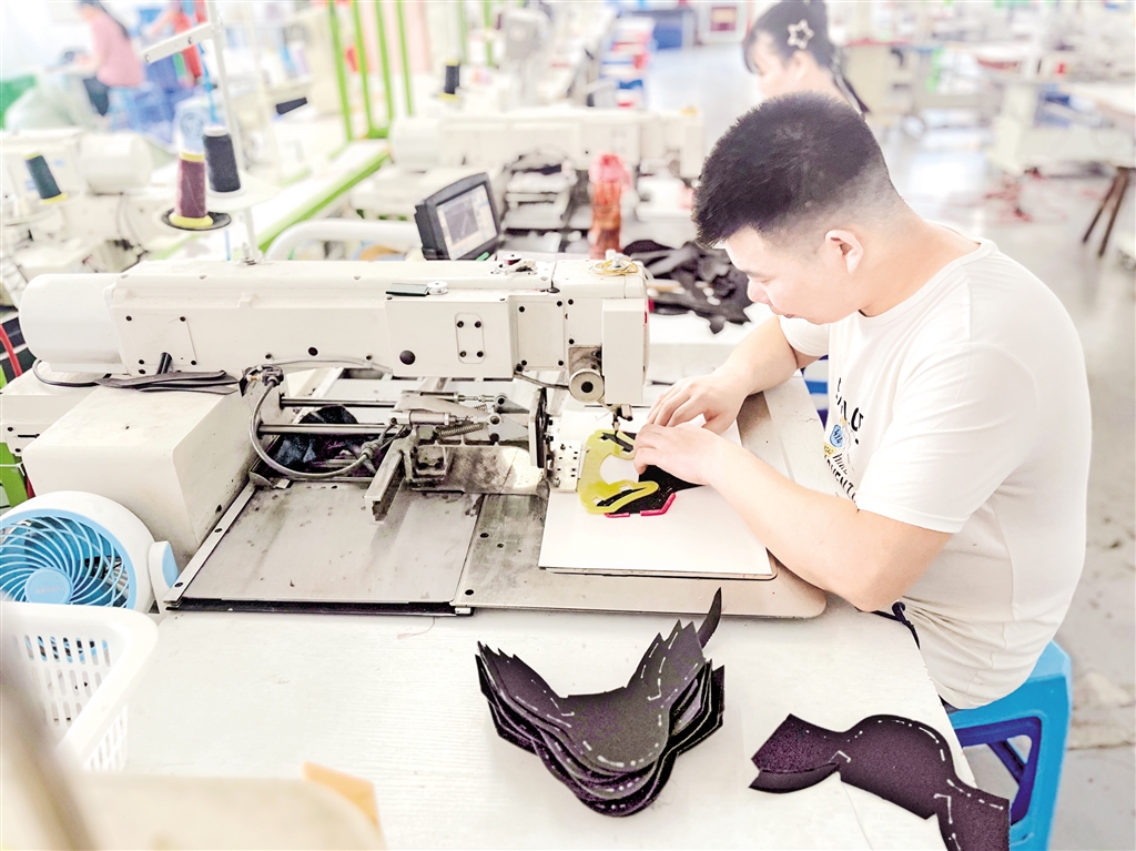同樣忙碌的場景也出現(xiàn)在景鑫鼎昊鞋業(yè)公司的車間內(nèi)。“根在這,總要回來做點什么。”公司負(fù)責(zé)人劉守杰說,和許多小鎮(zhèn)青年一樣,他曾外出闖蕩,積累了豐富的行業(yè)經(jīng)驗。一次與制鞋業(yè)的深度接觸,讓他看到了商機,更看到了帶動鄉(xiāng)親就業(yè)的可能。“自己富了不算啥,讓大伙都掙到錢,那才叫本事。”懷揣反哺家鄉(xiāng)的樸素心愿,2019年,他毅然返鄉(xiāng)創(chuàng)辦鞋廠。