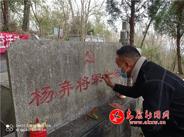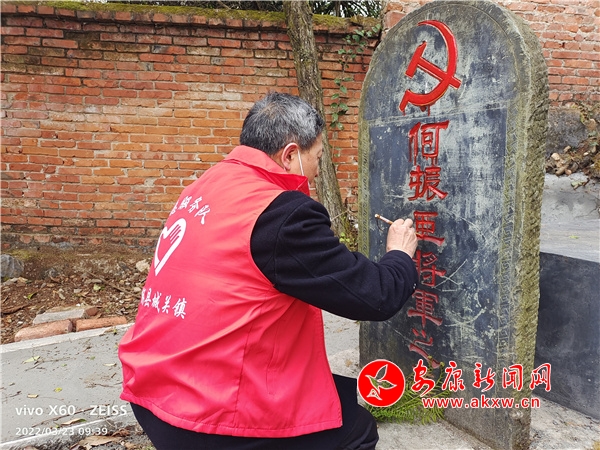 活動(dòng)現(xiàn)場(chǎng),該鎮(zhèn)10余名書(shū)法志愿者們向烈士鞠躬后,便小心翼翼地把墓碑上面的灰塵刷去,開(kāi)始嚴(yán)肅認(rèn)真地一筆一劃為烈士墓碑描摹碑文。每一筆,都刻畫(huà)了志愿者們對(duì)先烈們的沉痛追思;每一畫(huà),都描摹著對(duì)新生活的無(wú)限感激。經(jīng)過(guò)3個(gè)多小時(shí)的努力,40余座革命烈士墓碑的字跡煥然一新,在陽(yáng)光的照耀下,顯得格外清新醒目,志愿者們露出了欣慰的表情。