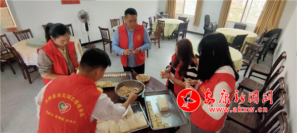 一大早,三同村和玉河村黨支部黨員干部就開始了緊張有序準(zhǔn)備工作,村部廣場(chǎng)上,擺起支起了一口大鍋。切菜剁肉,剁餡包餃子,收拾餐桌......忙得不亦樂乎,鉚足了勁要讓老人過(guò)一個(gè)難忘的重陽(yáng)佳節(jié)。對(duì)于行動(dòng)不便和年齡大的老人,身穿紅馬甲的志愿者甚至上門用車把老人們送到村部。