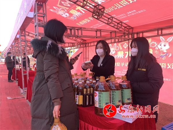 活動(dòng)現(xiàn)場(chǎng),伴隨著喜慶的音樂聲,攤位上擺滿了各種各樣的年貨,洋溢著濃濃的年味。市民們穿梭其中,漢陰炕炕饃、漢陽(yáng)蒸盆子、純正菜籽油、臘肉和香腸、年節(jié)飾品等60余種商品齊聚這里,吸引著過(guò)往消費(fèi)者駐足品嘗、選購(gòu)。