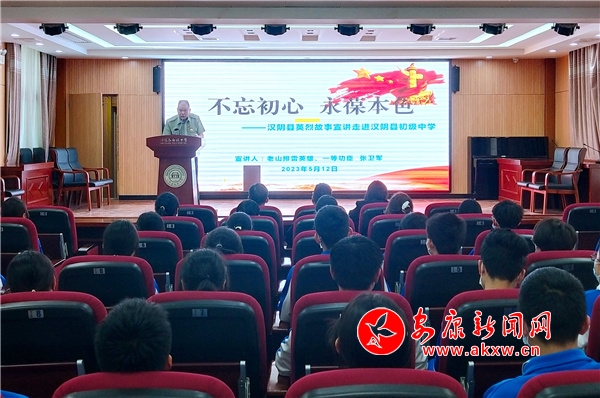 本網(wǎng)訊(通訊員 蘭本波)追溯五月之紅,續(xù)寫紅色華章。5月12日,由漢陰縣退役軍人事務(wù)局開展的英烈故事“進(jìn)機(jī)關(guān)、進(jìn)學(xué)校、進(jìn)社區(qū)、進(jìn)軍營(yíng)、進(jìn)企業(yè)”巡回宣講活動(dòng)走進(jìn)漢陰縣初級(jí)中學(xué)。