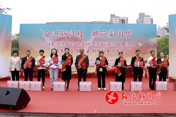 本網(wǎng)訊(通訊員 賀珍珍 熊樂(lè) 張欣欣)為進(jìn)一步弘揚(yáng)家訓(xùn)文化,傳承優(yōu)良家風(fēng),5月9日,由漢陰縣紀(jì)委監(jiān)委、縣委宣傳部主辦,漢陰縣婦聯(lián)、縣文聯(lián)承辦的“奮進(jìn)新征程 共筑中國(guó)夢(mèng)”——“萬(wàn)條家訓(xùn)進(jìn)萬(wàn)家”家風(fēng)故事分享暨最美家庭、好婆婆、好媳婦表?yè)P(yáng)大會(huì)在漢陰縣鳳凰廣場(chǎng)舉行。CVd安康新聞網(wǎng)